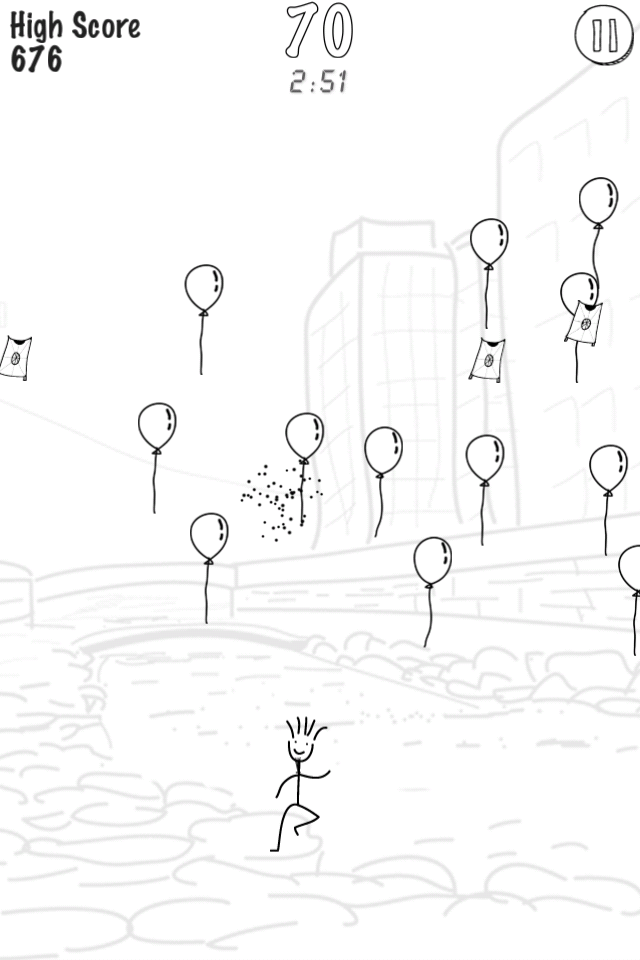 棒人間の動きは羽の着地点に移動するようになっているので、基本はタイミング良くタップするだけだが、これが最初はなかなか難しい。
